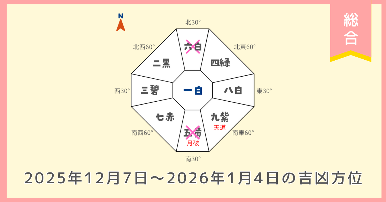 - 2025年12月度の月干支は『子』になるので、反対側の『南』が月破になります。