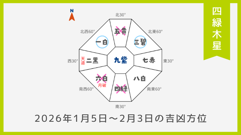 - 2026年1月度の月干支は『丑』になるので、反対側の『南西』が月破になります。