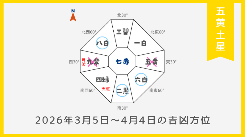 五黄土星の2026年盤における吉凶方位