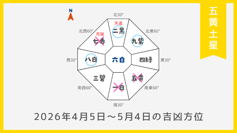 - 2026年4月度の月干支は『辰』になるので、反対側の『北西』が月破になります。