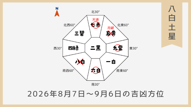 - 2026年8月度の月干支は『申』になるので、反対側の『北東』が月破になります。