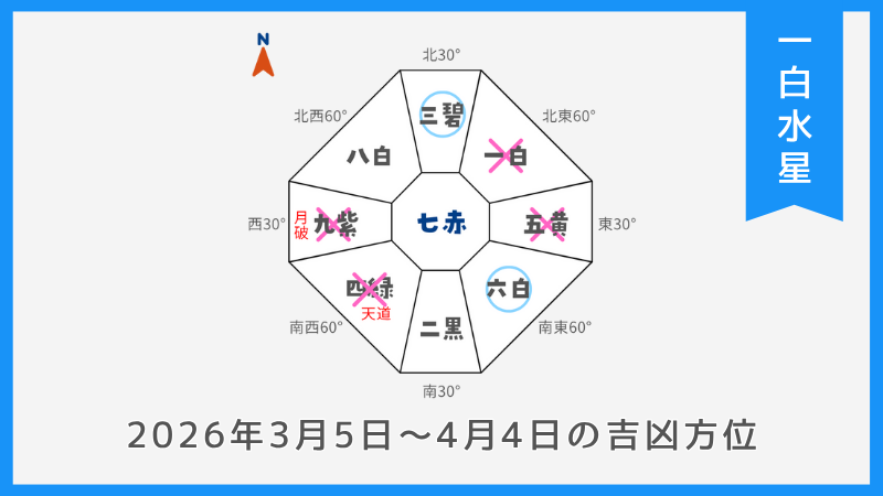 ¥100|一白水星|2026年3月5日~4月4日の吉方位・凶方位