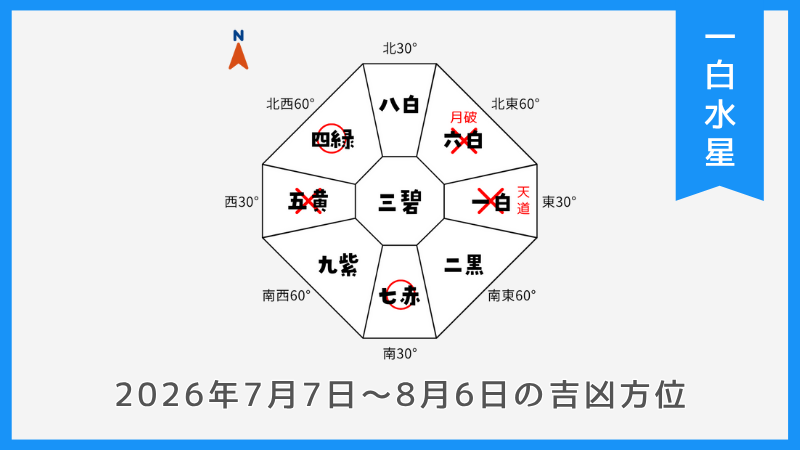 - 2026年7月度の月干支は『未』になるので、反対側の『北東』が月破になります。