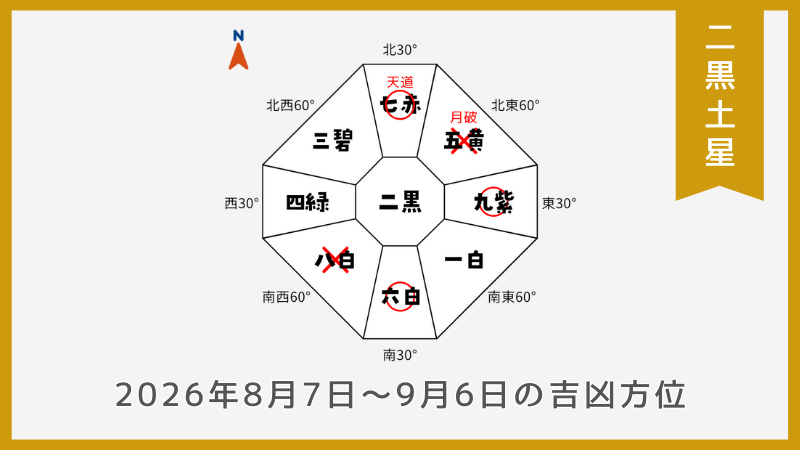 二黒土星の2026年盤における吉凶方位