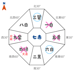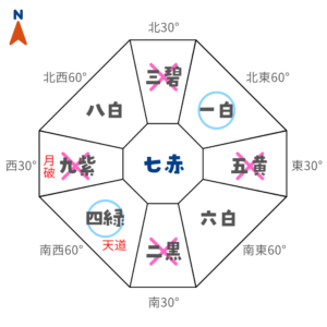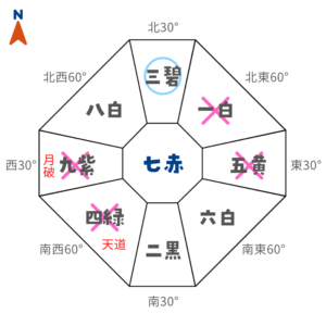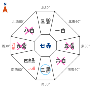 西暗剣殺+月破凶方位