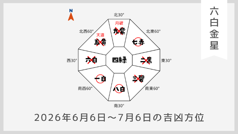 - 2026年6月度の月干支は『午』になるので、反対側の『北』が月破になります。