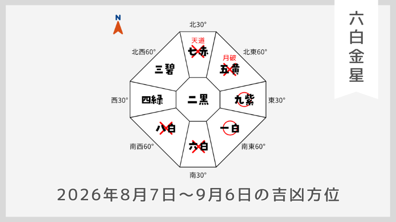 - 2026年8月度の月干支は『申』になるので、反対側の『北東』が月破になります。