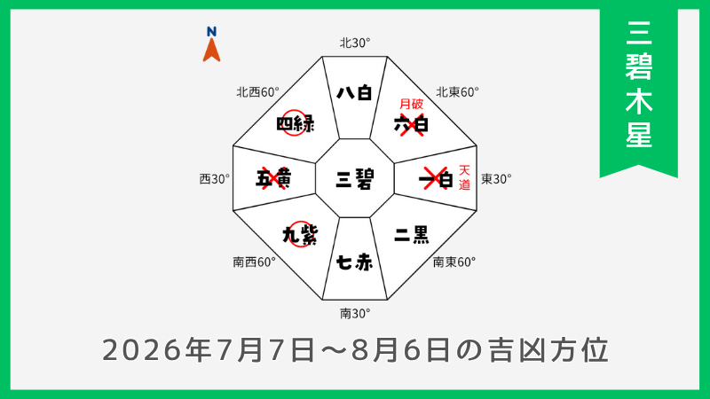三碧木星の2026年盤における吉凶方位