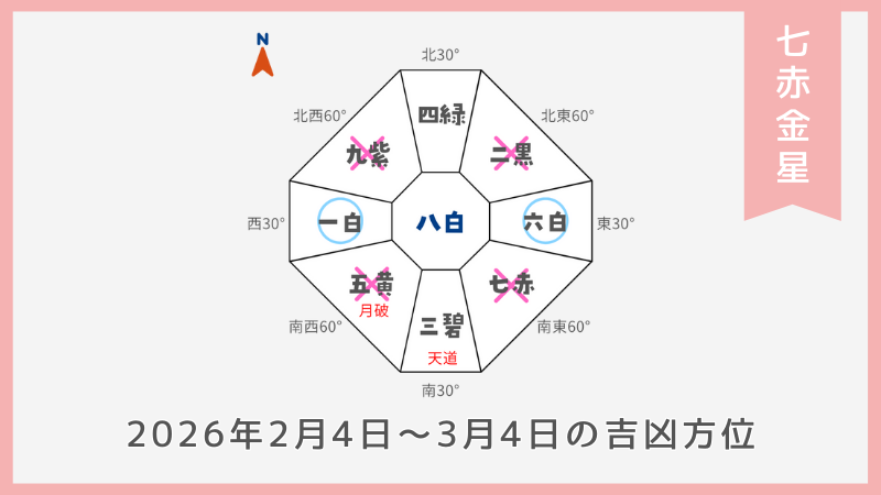 - 2026年2月度の月干支は『寅』になるので、反対側の『南西』が月破になります。