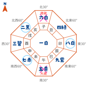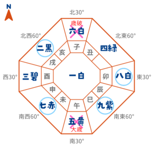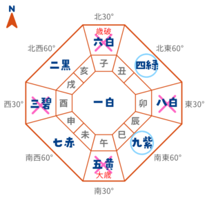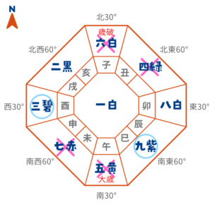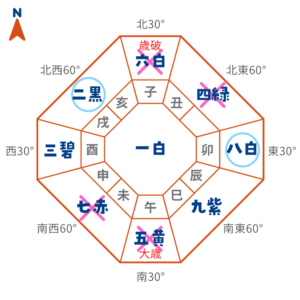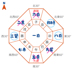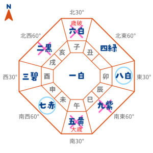 北 | 暗剣殺+歳破 | 凶方位 |