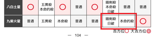 | 九紫火星の西 | 大吉方位 | 本命的殺 |