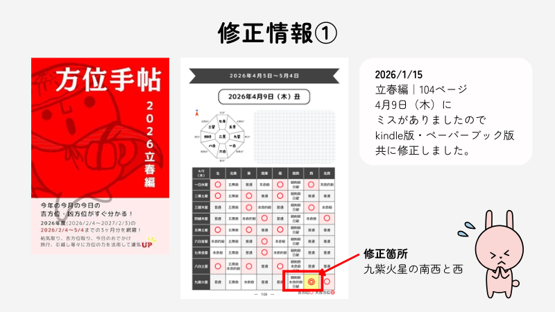 方位手帖2026立春編104ページに一部ミスがあり、修正版をアップしました。